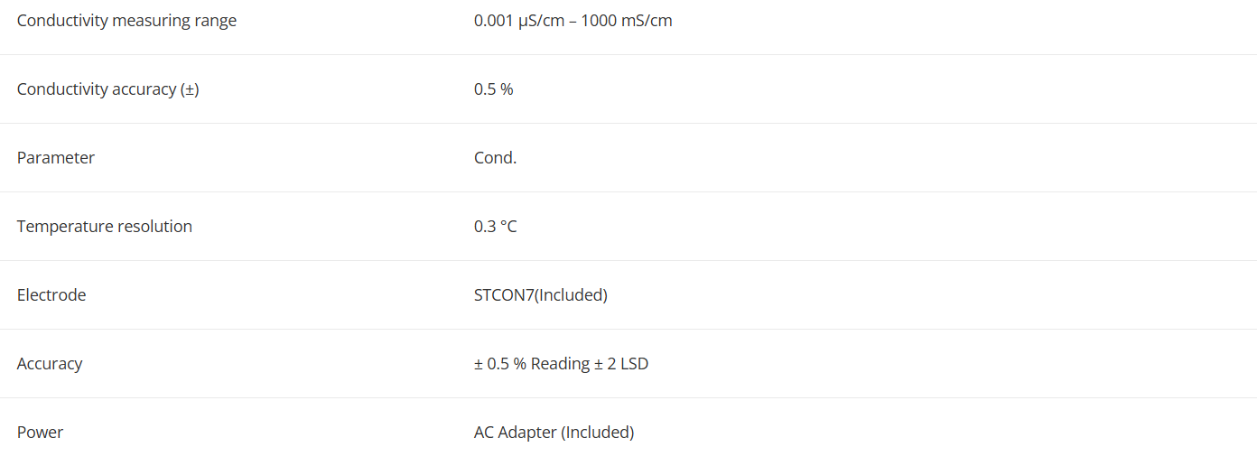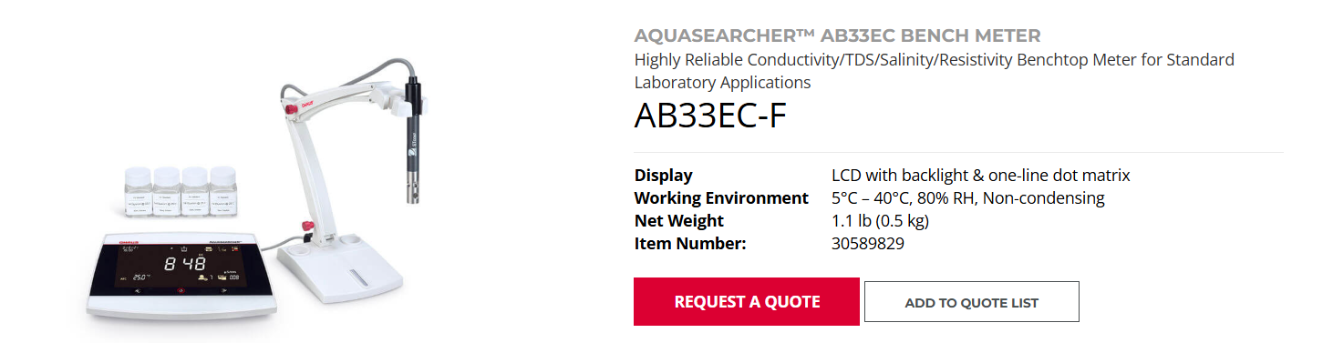Thông số kỹ thuật Máy đo độ dẫn điện bàn Ohaus AB33EC-F
