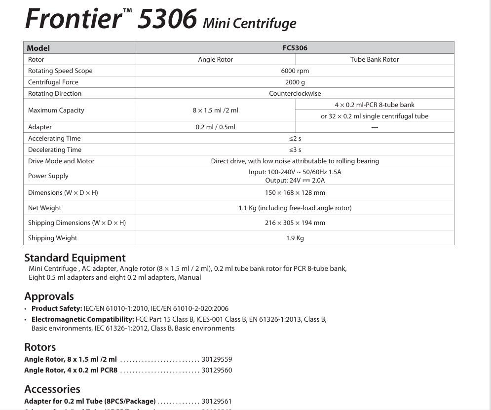 Ohaus FC5306 là dòng centrifuge để bàn nhỏ gọn, phù hợp cho các ứng dụng ly tâm cơ bản trong phòng thí nghiệm, bệnh viện, trường học, trung tâm nghiên cứu.